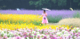 가을비가 내린 7일 경남 함양군 상림경관단지에서 꽃구경을 나온 관광객이 우산을 받쳐 들고 만개한 가을꽃을 구경하며 즐거운 시간을 보내고 있다... [