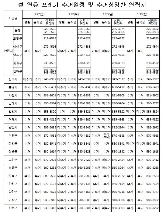 설 연휴 기간, 우리 동네 쓰레기 이날 수거해요- 쓰레기 수거일정 사전공지로 도민 불편 최소화- 전 시군 수거상황반 및 기동청소반 동시 운영으로 민원 신속 처리 정유근 기자 / |