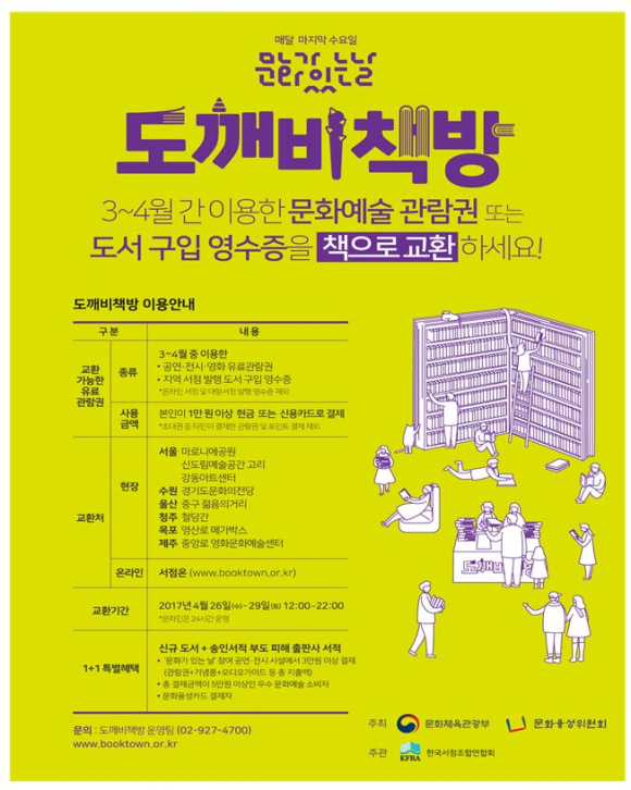 【제주도제주시】공연·전시·영화 관람권 도서로 교환 하세요- '도깨비 책방', 4. 26. ~ 4. 29. 영화문화센터에서 운영 -정호 기자 / |