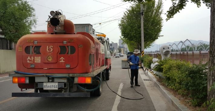거창군, 읍 시가지 조경수 급수작업 총력정호 기자 / |