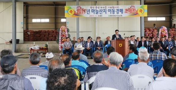 합천군 농산물 산지공판장 마늘 경매 본격 시작- 경매 수수료 지원으로 농가 시름 덜어 -정호 기자 / |
