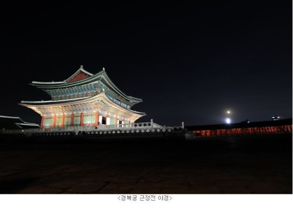 문화재청(청장 나선화)은 이달부터 9월까지 경복궁과 창경궁에서 진행되는 고궁 야간 특별관람 일정을 확정했다. 이달에는 경복궁과 창경궁에서 16일부터 29일(경복궁 화요일 휴무, 창경궁 월요일 휴무)까지, 8월에는 경복궁에서만 20일부터 9월 2일(기간 중 화요일 휴무), 9월에도 경복궁에서만 17일부터 30일(기간 중 화요일 휴무)까지 각 12일간 진행된다. 조명 개선을 위한 사전조사로 인해 8월과 9월에 창경궁은 야간 관람 일정이 없다. 야간 특별관람 시간은 ▲ 7월과 8월에는 오후 7시 30분부터 10시까지(입장마감 오후 9시까지), ▲ 9월에는 오후 7시부터 9시 30분까지(입장 마감 오후 8시 30분까지)이며, 야간 특별관람 예매를 하지 못한 경우에는 상시 야간관람이 가능한 덕수궁(오후 8시까지 입장, 오후 9시까지 관람/월요일 휴무)을 이용할 수 있다.
