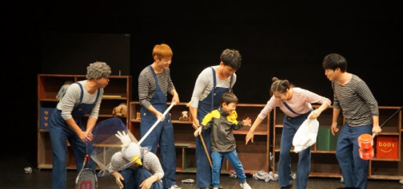 먼저 책놀이에서는 관객과 몸풀이하며 책으로 상상할 수 있는 모든 것으로 여러 가지 변형 놀이를 하고, ‘비둘기 똥 소동’을 겪는 마을사람들이 비둘기를 잡기위해 기발한 생각으로 관객과 문제를 해결해나가는 참여형 공연을 선보인다.