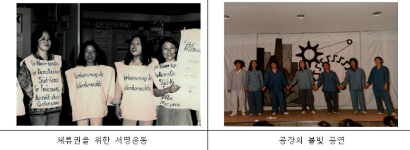 | 남은 이들과 돌아온 이들 3부에서는 처음의 3년 계약을 마치고 한국에 돌아온 이들의 모습과 독일 사회에 정착하여 독일 교민 1세대를 형성한 한인 여성들의 이야기를 작가들의 영상과 사진을 통해 전시한다. 한인 간호여성 4명이 그들에게 가장 인상적인 한국 노래를 불렀고, 독일에서 생을 마감하신 분들의 묘지에서 그분들을 기억하는 가족과 지인들의 목소리를 담았다. 2세들이 보는 어머니의 모습과 그들이 느끼는 한국과 독일에 대한 이야기도 들을 수 있다. 상호문화사회의 여성들 4부에서는 1960~70년대에 독일의 손님노동자(Gastarbeiter)로 이주했던 한국 여성들이 독일 시민 사회의 일원으로 살아가고, 베를린시의 상호문화사회(Interkulturelle Gesellschaft) 정책 속에서 진정한 다문화사회를 실현하기 위해 노력하는 모습을 소개하고 있다. 50여 년 전 서독 사회로 이주했던 한국 여성노동자들의 경험을 통해 남과 북의 이념적 갈등과 1990년대 이후 급증한 외국 이주민들과 함께 살기 위한 과제를 가진 대한민국과 수도 서울이 상호 인정의 사회로 나아갈 수 있기를 기대해 본다. 이번 전시는 한국의 산업화가 진행되던 1960~70년대 독일로 떠난 한국 간호 여성들의 다양한 삶과 기억을 공감하고 한국현대사를 반추해 볼 수 있는 좋은 기회가 될 것이다.