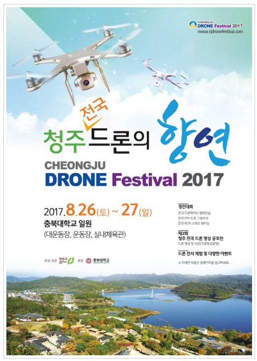 올해로 2회째를 맞는 ‘2017 청주 전국 드론의 향연’이 오는 8월 26일과 27일 양일간 충북대학교 일원에서 개최된다.