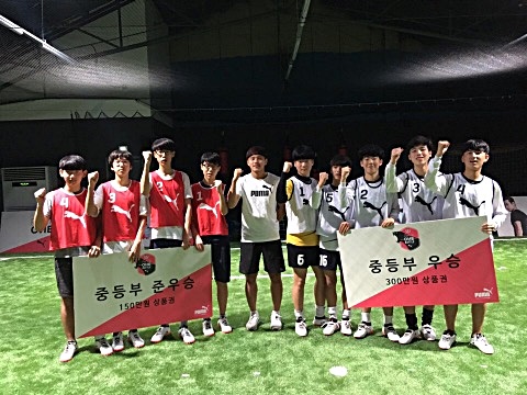 함양군은 함양중학교 축구꿈나무들이 서울서 열린 푸마 원 배틀 미니축구대회에서 전국에서 출전한 쟁쟁한 경쟁자를 물리치고 우승을 차지하는 쾌거를 이뤘다고 8일 밝혔다. 푸마 원 배틀 미니축구대회는 글로벌 스포츠 브랜드인 푸마가 신제품 발매를 기념해 5~6일 서울 성수동 S팩토리에서 개최됐으며, 이번 대회에는 4~5명이 한 팀을 이룬 전국 중등부 32개팀, 고등부 32개팀 등 총 64개팀이 열전을 치렀다. ‘날으는 감자’를 예명으로 출전한 함양중학교팀 선수는 함양중 3년 서상준·박성룡·김해민 학생, 함양중 2년 권찬희·김진서 학생 등 5명이다.