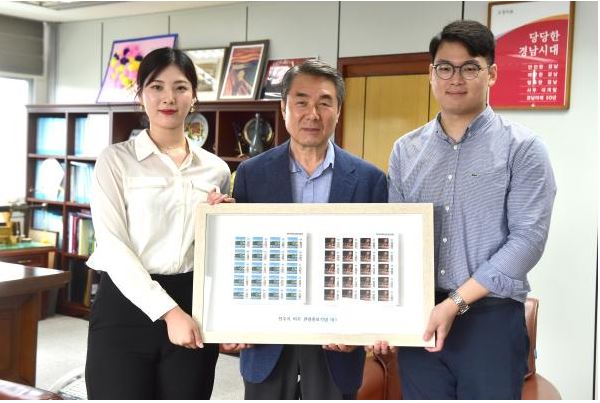 이날 기증은 진주 유망 IT 벤처기업 황 대표가 지난 7월 미국 뉴욕을 방문해 진주시 관광 홍보용 미국 우표를 발행해 진주시를 미국에 적극 홍보한 것이 계기가 되었다.