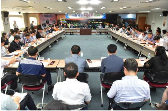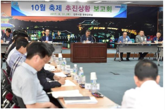 진주시는 31일 오후 4시 시청 문화강좌실에서 이창희 진주시장과 유관기관, 단체, 관계 공무원 등 100여명이 참석한 가운데‘10월 축제 추진상황 보고회’를 개최했다.
