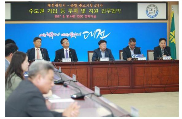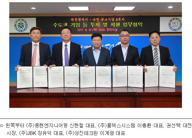대전시, 수도권 등 4개 유망기업과 투자유치 협약 체결- 과학벨트 거점지구․하소지구 등 274억 원 투자, 162개 일자리 창출 -정호 기자 / |