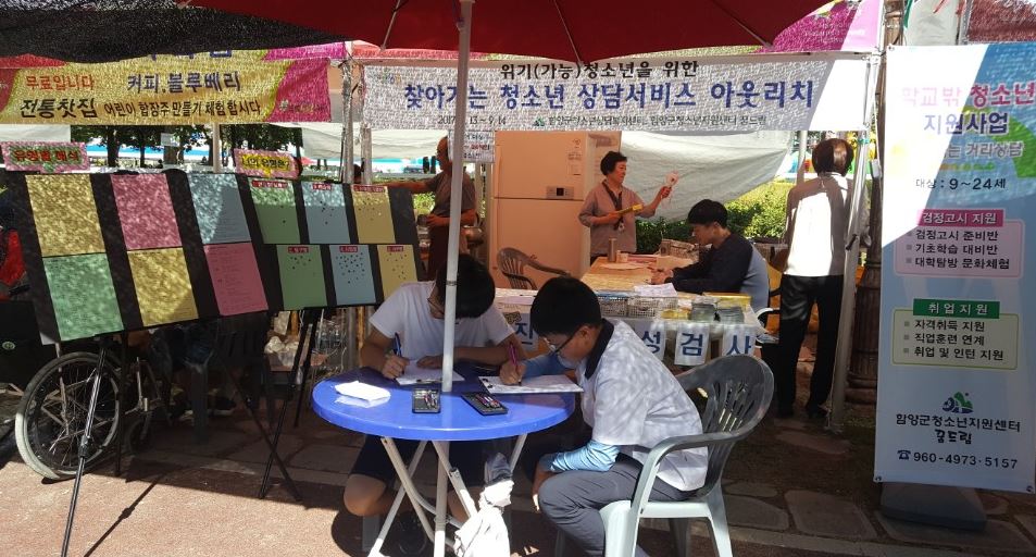 축제기간에도 찾아가는 청소년상담서비스 “아웃리치” 부스운영도움이 필요하지만 선뜻 나서지 못하는 위기 청소년을 위한 함양군 찾아가는 청소년 상담서비스!정호 기자 / |