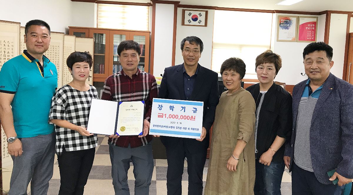 (재)안의면장학회에 장학금 기탁의 손길 이어져 ‘훈훈’안의면의용(여성)소방대 100만원 기탁정호 기자 / |