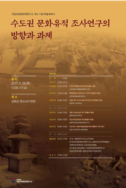 - 국립강화문화재연구소, <수도권 문화유적 조사연구의 현황과 과제> 학술세미나 개최 / 9.28.