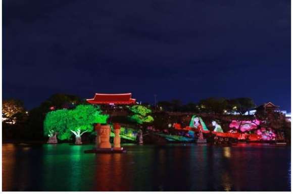 27일 오후 진주성 촉석루를 배경으로‘미디어파사드’시연이 펼쳐졌다. 미디어파사드는 미디어와 파사드를 결합시킨 용어로 건물 외벽을 대형 스크린으로 운용하는 빛의 예술이다. 역사와 전통이 있는 진주성 촉석루 주변 현장을 대형 스크린에 담아낸 환상적인 3D 입체영상은 관람객을 환상으로 몰아넣기에 충분했다.