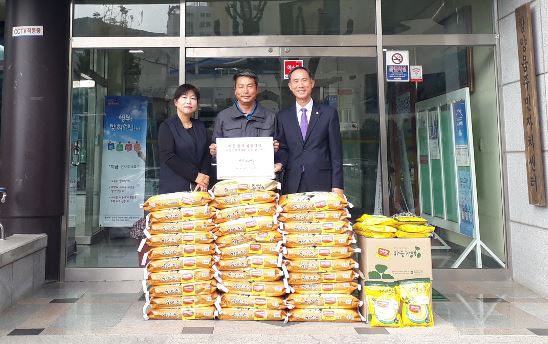 군민체육대회 종합우승 시상품 이웃돕기로 더욱 값지게함양읍체육회, 24일 읍사무소 통해 이웃돕기 쌀 358kg 직접 전달정호 기자 / |
