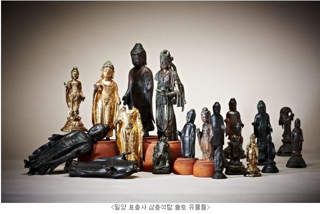 문화재청(청장 김종진)은 「밀양 표충사 삼층석탑 출토 유물 일괄」 등 3건을 국가지정문화재 보물로 지정하였다. 보물 제1944호 「밀양 표충사 삼층석탑 출토 유물 일괄(密陽 表忠寺 三層石塔 出土 遺物 一括)」은 1995년 삼층석탑 해체보수 작업 중 기단(基壇) 적심부에서 발견되었다. 이들 유물은 통일신라 시대부터 고려 시대에 이르는 20구의 금동불상과 탑에 봉안된 여러 공양물, 석탑의 수리를 알려주는 조선 초기의 ‘개수탑기비(改修塔記碑)’(1491년)를 포함하고 있다. 불상 중에는 머리와 대좌 등이 파손된 것들도 있지만 출토지가 분명한 곳에서 시기를 달리하는 많은 불상이 함께 발견되었다는 점에서 중요한 의의가 있다. * 개수탑기비(改修塔記碑): 탑을 수리한 연혁을 새긴 비석