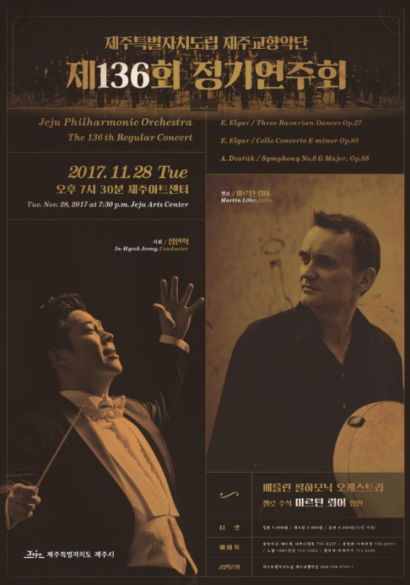 | 제주특별자치도립 제주교향악단에서는 11월 28일(화) 오후 7:30분 제주아트센터에서 제136회 정기연주회를 개최한다.