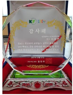 대전보건환경연구원, 건양대 우수현장실습처 감사패 받아- 2017학년도 건양 산학협력 페스티벌 우수 현장실습처 선정 -정호 기자 / |