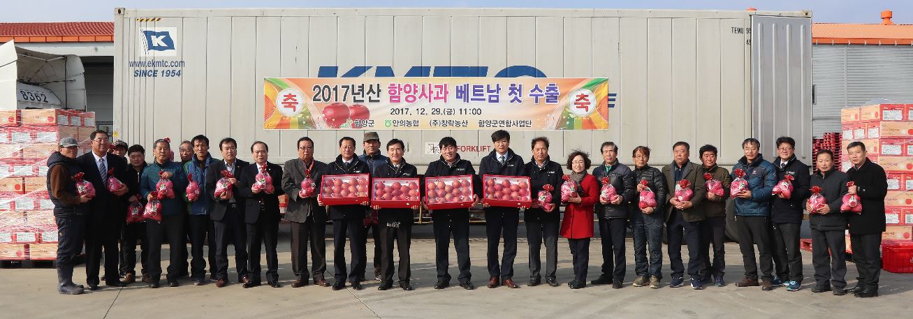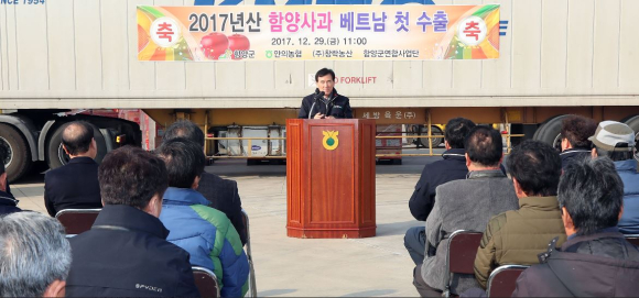 아삭아삭 함양사과 베트남 첫 수출함양군, 29일 안의농협서 사과 12톤 수출 선적식…2월까지 수출 진행·베트남 시장 입맛 사로잡아정호 기자 / |