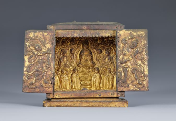 | 이번에 기증된 <고려 불감>은 휴대용 불감으로 사찰 이외의 장소에서 예불을 돕는 기능을 하며 탑을 세울 때 안에 봉안되기도 했다. 이러한 소형 금속제 불감은 고려 말 조선 초에 집중적으로 제작되었으며, 현재 15여 점이 전한다. 소형 불감은 상자 형태에 지붕 모양 뚜껑이 있는 전각형과 지붕이 없는 상자형으로 구분되며 후자가 사례가 적다. 이 <고려 불감>은 희소한 상자형 불감이며, 고려 14세기 말에 제작된 것으로 추정되어 가치가 높다. 이 <고려 불감>에서 가장 주목할 점은 불감 내부의 석가여래 설법 장면을 타출 기법으로 제작한 부조 장식이다. 금강역사상이 새겨진 문을 열면, 중앙에 석가여래가 있고, 좌우의 협시보살, 10대 제자와 팔부중八部衆(불법을 수호하는 여덟 신)이 있는 여래설법도如來說法圖가 새겨진 얇은 금속판이 덧대어 있다. 고려시대 불감 중 유일하게 팔부중이 등장하는 여래설법도로서, 조선 후기에 유행한 영산회상도靈山會上圖의 시원으로 볼 수 있어서 매우 중요하다.