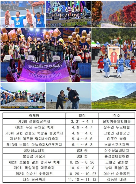 남해군, 축제 일정 확정 3월~10월까지 명품축제 이어져