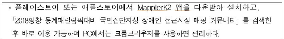 「2018평창 동계패럴림픽대비 국민집단지성 장애인 접근시설 매핑 커뮤니티」를 검색한