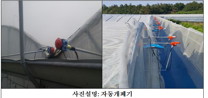 | 제주시에서는 지난해에도 채소‧화훼 하우스 자동화시설 지원 사업으로 총사업비 1억4,300만원(보조금 8,600만, 자부담 5,700만)을 투자하여 36농가에 자동개폐기 525대, 환풍기 55대 등을 지원한 바 있으며, 앞으로도 동 사업을 추진하여 영농여건 개선 및 농가 소득 증대에 지속적으로 기여할 계획이다. |