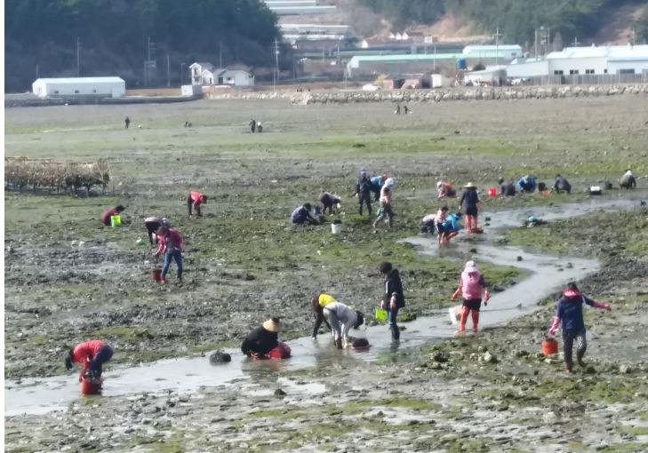 고성 하일면, 조개잡이 체험 인기-3월31일부터 4월1일까지, 춘암리 신기마을 앞 갯벌에서 조개잡이 300여명 참가정유근 기자 / |