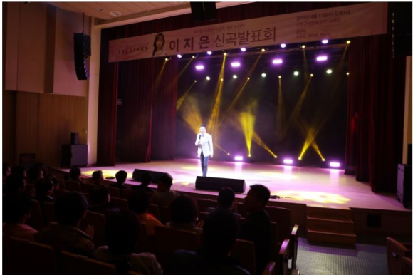 의령군(군수 오영호)은 지난 11일 의령군민문화회관 공연장에서 지난해 제3회 이호섭 가요제에서 대상을 수상한 신인가수 이지은의 신곡발표회를 성대히 개최했다고 밝혔다. 이날 발표한 신곡은 “바보같이”(이채운 작사 이채운 작곡 멧돼지 편곡)와 “담을 수 없는 사랑”(고순옥 작사 이채운 작곡 멧돼지 편곡) 총 2곡으로 가수 이지은의 아름답고 호소력 짙은 목소리와 어울리는 애절한 발라드 곡이다.