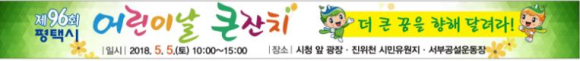 오는 5월 5일 어린이날 평택시는 5월 5일 어린이날을 맞아 제96회 어린이날 큰잔치 ‘더 큰 꿈을 향해 달려라!’ 행사를 개최한다.