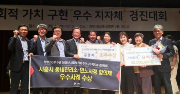 이날 대회에서는 현장심사단의 심사를 거쳐 인권, 사회통합, 공동체, 시민참여, 상생협력 등 5개 분야별로 사회적 가치를 구현한 최우수사례를 선정하였다. 전라북도 진안군의 ‘좋은 세상 만들기 위원회 운영’, 부산시 사상구의 ‘다복따복망 운영’, 경기도 시흥시의 ‘동네관리소 설치・운영’, 제주도의 ‘골목상권 자체브랜드 개발 및 공동배송 지원’, 전라북도 완주군의 ‘청년완주 JUMP 프로젝트’ 사례가 최우수사례로 선정되어 최우수상(재정특전(인센티브) 2억 원)을 수여하였고, 경진대회에서 분야별 2등을 차지한 우수사례에 대해서는 우수상(재정특전 1.2억 원)을, 사전심사 결과 선정된 나머지 28개 우수사례에 대해서는 장려상(재정특전 0.5억 원)을 수여하였다.