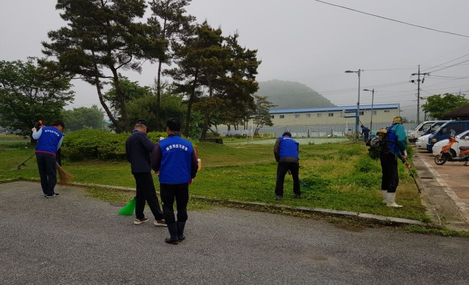 충주 살미면 직능단체 손님맞이 청결활동박권목 기자 /
