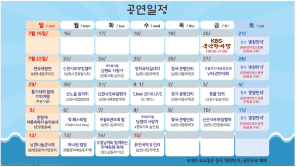 ‘한 여름밤의 소리여행’ 상설공연이 오는 7월 22일(일)부터 8월 15일(수)까지 매일 저녁 8시 사랑의 광장에서 개최된다. 공연시간은 약 1시간 30분 정도 진행되고 관람료는 무료이다.