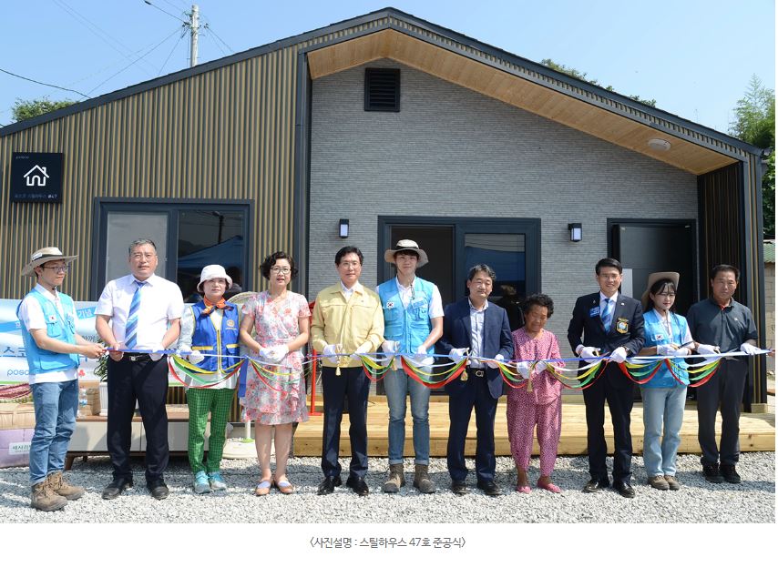 이 날 준공식에는 남원시, 포스코, 기아대책과 후원을 도운 한국철강협회, 남원춘향로타리클럽‧남원로타리클럽, 금지면사무소, 금지면 119센터, 봉사자 등 기관‧단체 관계자 50여 명이 참석했다. 포스코는 2009년부터 소방방재청과 함께 화재 피해 저소득 가정에게 포스코의 철강재(PosMAC)로 만든 스틸하우스를 전국 20여개 도시에 기부해왔다. 특히 포스코는 올해 창립 50주년을 맞아 7월까지 총 50채의 스틸하우스를 기부할 예정이다.