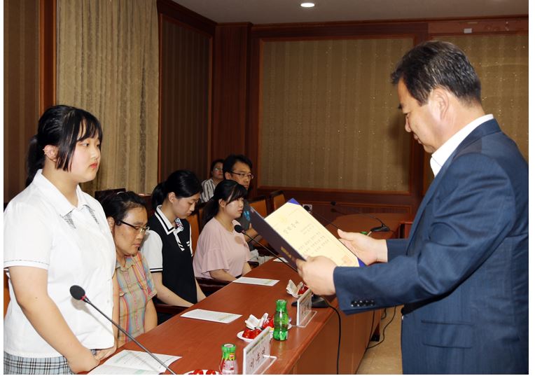 함평군, 2018 상반기 전남인재육성 장학금 전달- 성적우수, 희망키움, 다자녀, 해양도시가스 등 분야 16명에 총 956만원 전달 -정민권 기자 / |
