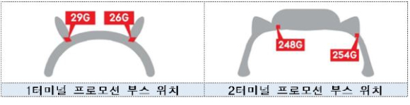 * 1터미널 : 26, 29번 게이트 인근, 2터미널 : 248, 254번 게이트 인근