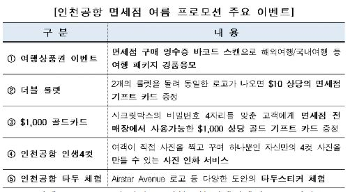 올 여름 인천공항 면세점 에어스타 애비뉴(Airstar Avenue)를 찾는 여객들에게 최고 2,000만 원 상당의 해외여행 상품권과 총금액 1억 5천만 원의 면세점 기프트 카드 등 다양한 혜택이 쏟아진다.