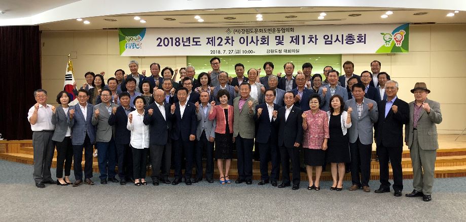 (사)강원도문화도민운동협의회(회장 김기남, 이하 협의회)는 27일 오전 10시부터 강원도청 별관 대회의실에서 「2018년도 제2차 이사회 및 제1차 임시총회」를 개최했다.