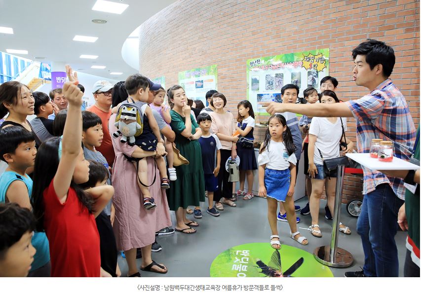 남원시(시장 이환주)가 운영하는 남원백두대간생태교육장에 여름휴가 기간 방문객들로 들썩이고 있다. 특히, 올 여름휴가 기간 동안 ‘달빛영화제’, ‘달빛콘서트’, ‘백두대간물놀이터’, ‘반딧불이랑 떠나는 세계곤충여행’ 등 풍성한 볼거리와 즐길거리가 마련돼 어린이와 학부모들로부터 호평을 받고 있다.