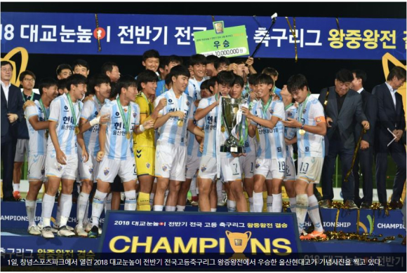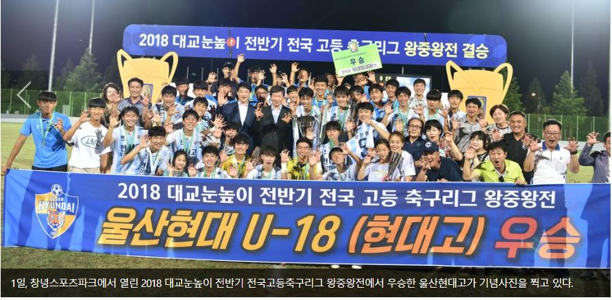 대한축구협회가 주최하고 경상남도축구협회와 창녕군축구협회가 주관하여 지난달 21일부터 창녕군 창녕스포츠파크에서 개최된 ‘2018 대교눈높이 전반기 전국고등축구리그 왕중왕전’의 대미는 울산현대고가 인천대건고를 꺾고 우승의 영광을 차지하면서 12일간의 대장정을 마무리 했다.