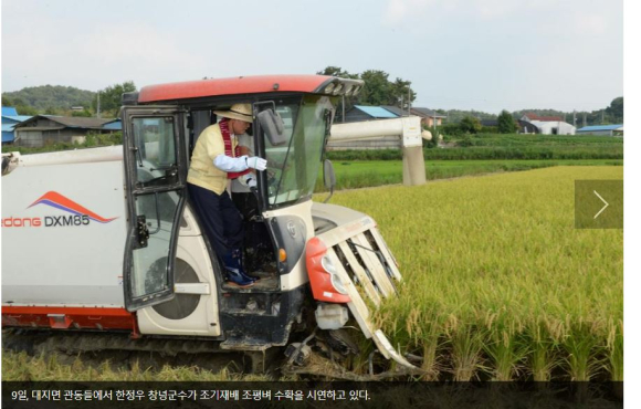 창녕군 조기재배 벼 ‘첫 수확’정유근 기자 / |