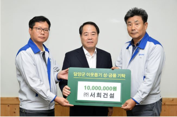 ㈜서희건설, ㈜휴먼시티, 추석맞아 담양에 이웃돕기 성금 기탁박권목 기자 / |