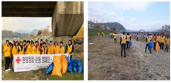 | □ 평창지구적십자협의회 오대천 둔치 환경정화활동 ○ 어제(10.23.) 평창지구적십자협의회(회장 서복순) 회원 35명은 오대천 둔치의 쓰레기를 줍는 환경정화활동을 실시함.