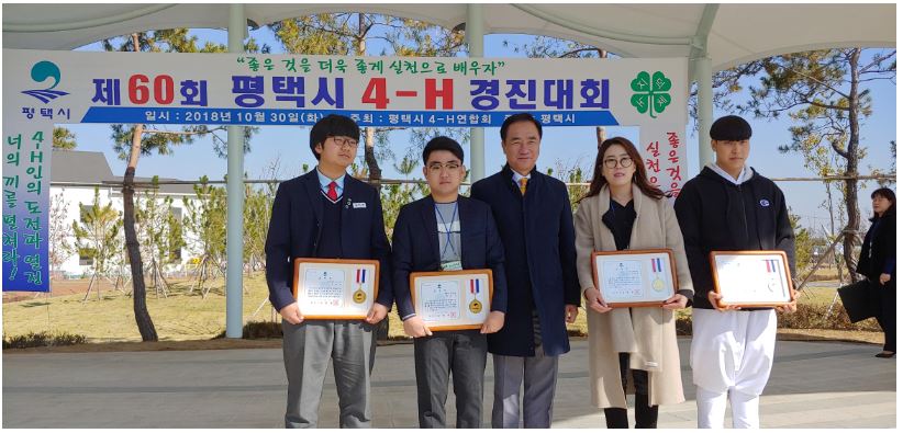 행사에 참석한 정장선 시장은 “60회째를 맞는 4-H경진대회를 축하하며, 우리나라 4-H운동의 역사와 청소년기의 중요성을 강조하며, 공정한 경진을 통해 지‧덕‧노‧체 4-H이념을 잘 실천하여 평택의 미래를 이끌고 갈 훌륭한 인재로 성장하길 기대한다”고 당부했다.
