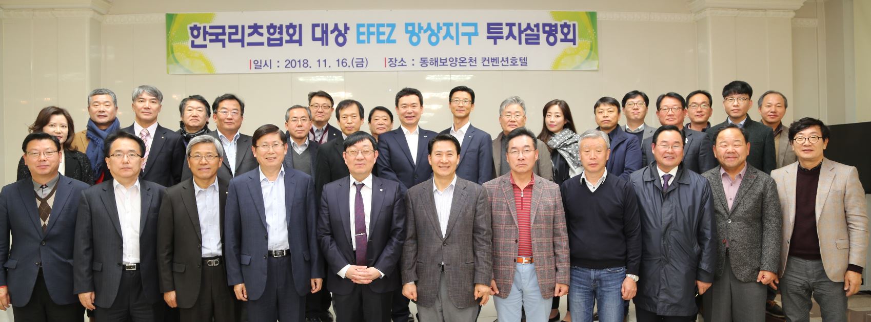 동해안권경제자유구역청(청장 신동학)은 2018. 11. 16일 한국리츠 회원 30명을 초청하여 망상지구 개발사업에 대한 진행상황을 설명하고 적극적인 투자를 요청했다.