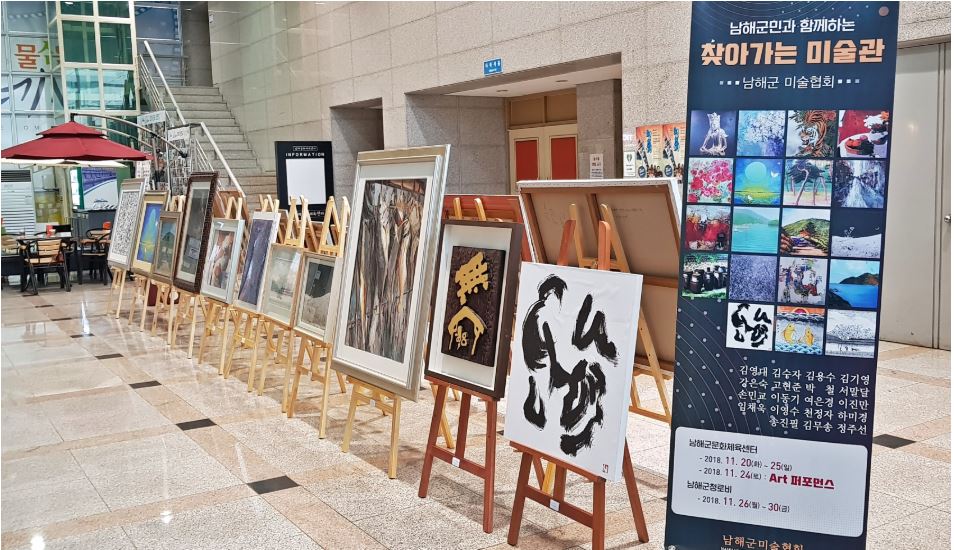 남해군미술협회, ‘찾아가는 미술관’ 개최이달 말까지 군청로비, 문화체육센터서 열려정민권 기자 / |