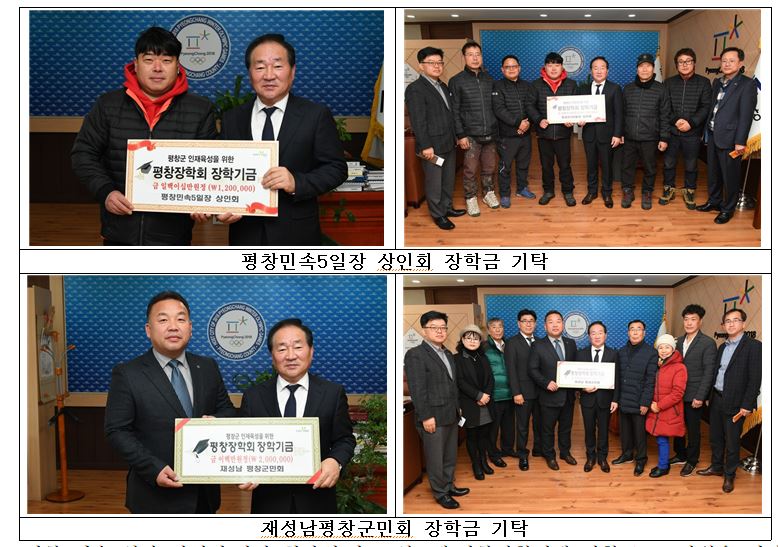평창장학회 장학금 기탁 이어져- 평창 민속5일장 상인회, 재성남평창군민회 평창장학기금 전달정민권 기자 / |