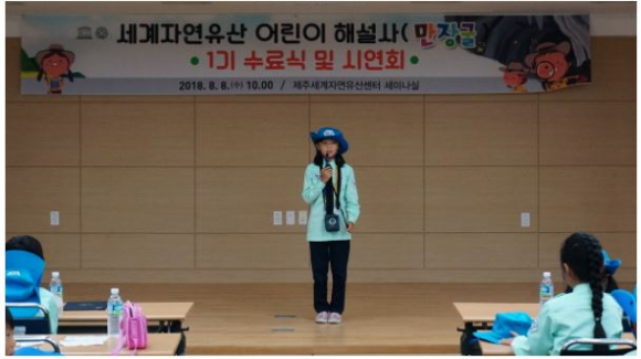 세계자연유산 어린이해설사 실력 뽐낸다!12월 8일 어린이해설사 경연대회, 12월 31일 성산일출축제 도우미로 활동김윤국 기자 / |