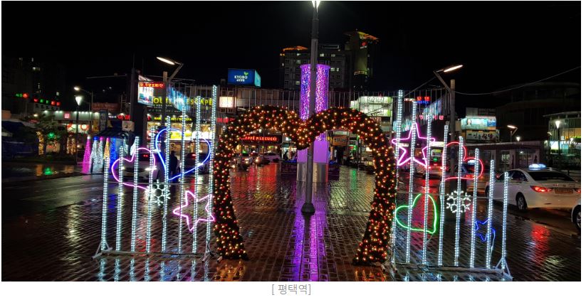| K-55 부대앞 신장쇼핑몰과 안정리 로데오거리는 성탄의 기쁨과 평화를 주제로 소망트리, 별자리 캐노피, 하늘은하수 캐노피, 수목LED등을 설치해 국제도시로서의 화합과 평화를 연출하며, 시청광장에는 조화를 주제로 LED화단, 대형소나무LED, 은하수조명, 투광조명 및 포토존 등을 설치해 시민모두가 함께 참여하고 소통하는 시민중심의 새로운 평택시 홍보에 적극 나설 계획이다.