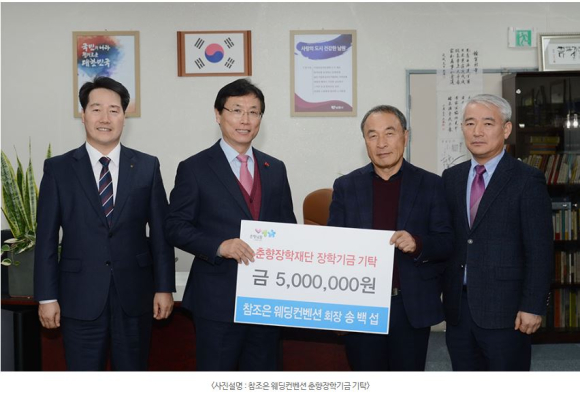 남원 새집 추어탕·참조은 웨딩컨벤션 춘향장학재단에 5백만원씩 기탁정민권 기자 / |