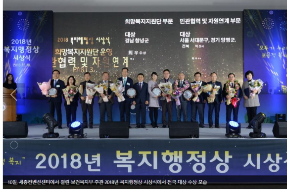 - 2018년 복지 분야 상급기관 평가 5관왕 달성 기염 토해 - 창녕군, 전국 희망복지지원단 운영 부문 대상 수상, 5관왕 쾌거 - 창녕군, 희망복지지원단 운영 전국 최고의 자리에 올라